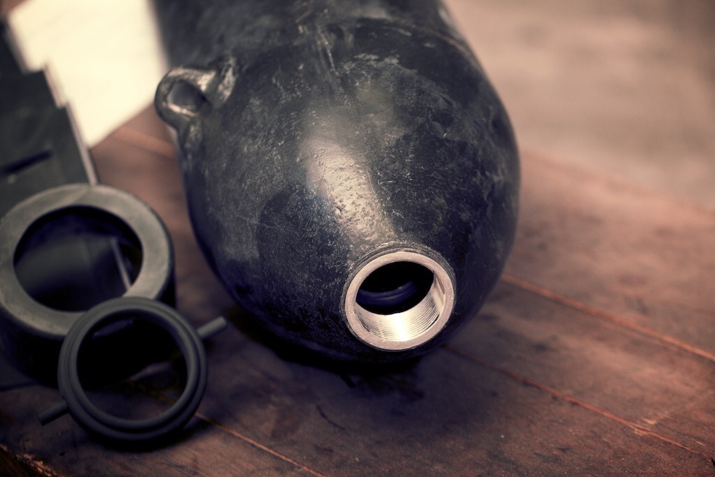 All Replica bombs are build from light weight composite materials and aluminum. All threads are identical and interchangeable with the genuine article. Metal fins are powder coated. Composite parts are coated with gelcoat which is more durable then paint. The gel coat used is UV stabilized and can handle prolonged exposure to harsh weather and from people poking and prodding.