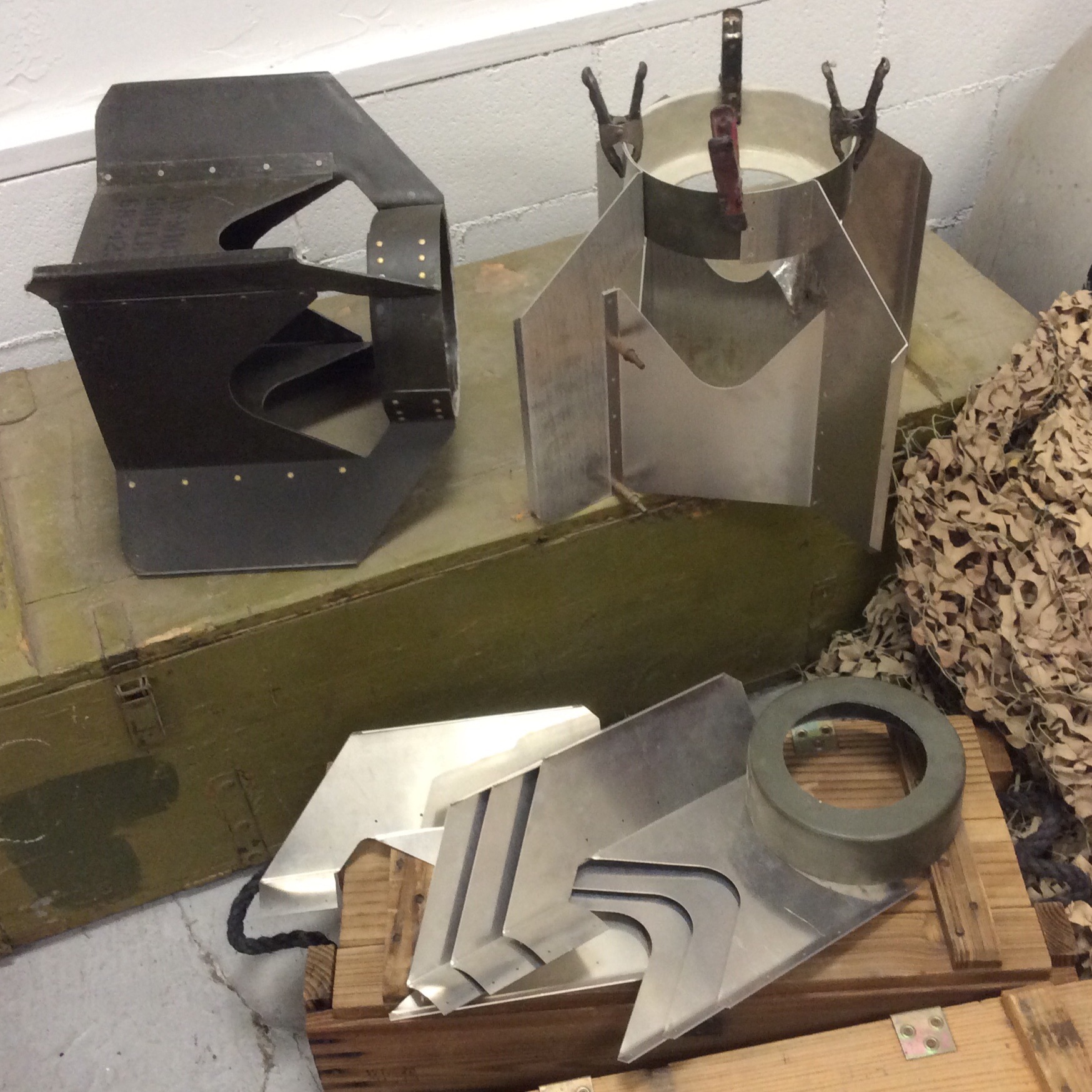 These aluminum fins are an exact replica made for our replica bombs and will fit the real article as well. The overall dimensions are 13.25" wide and 13.5" tall. The fin collar is 8" in diameter and 3" tall.