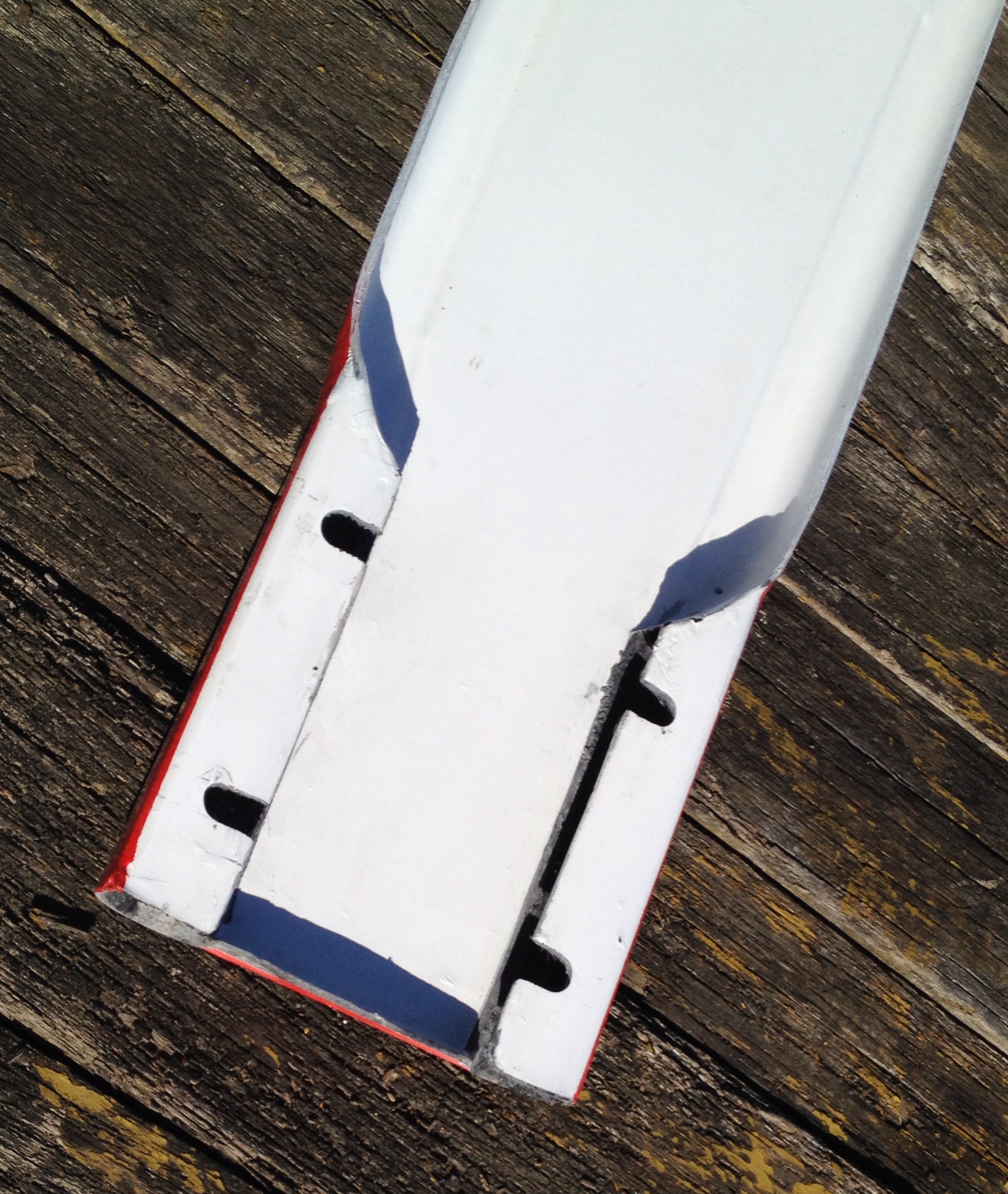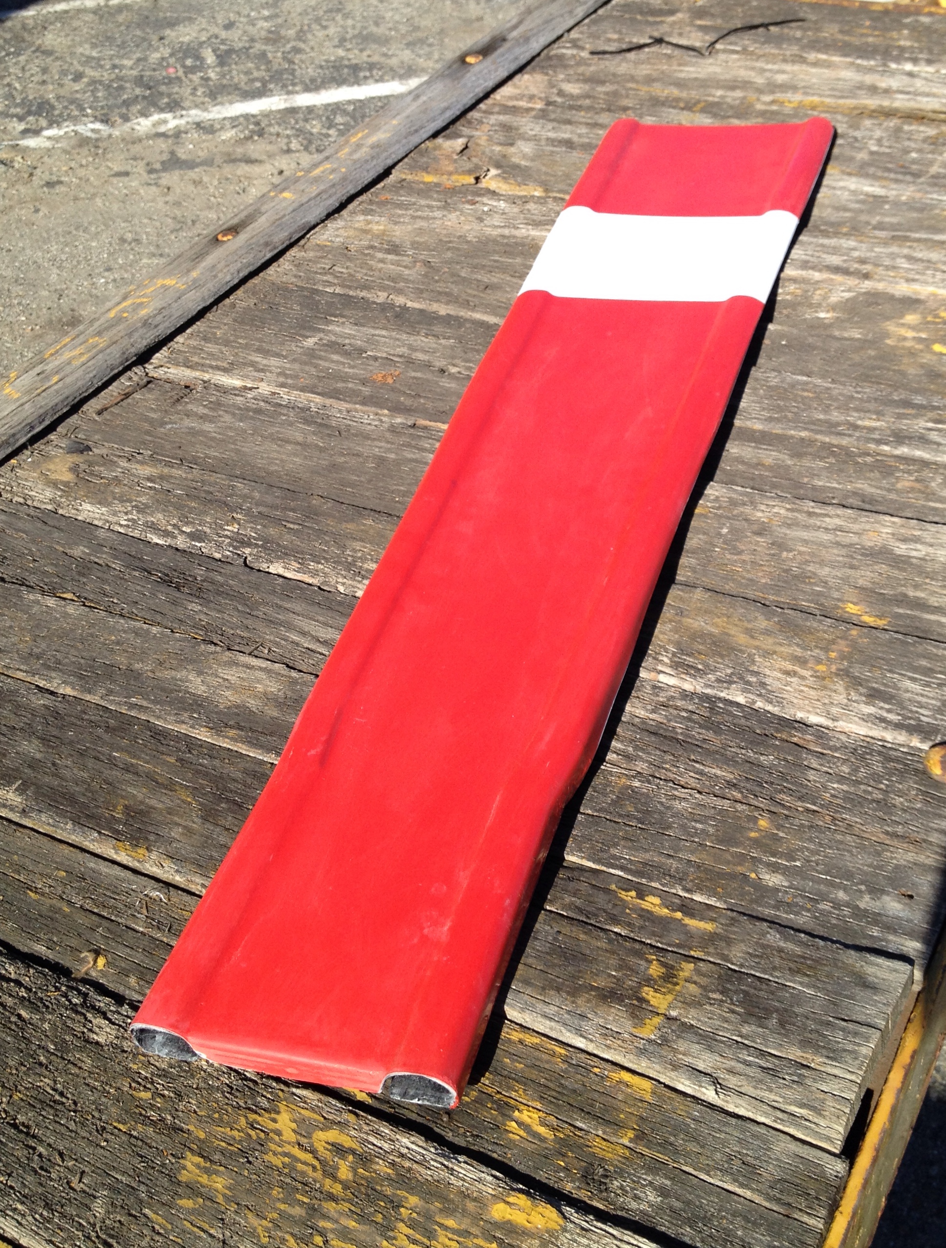 This blade is a full size replica, fabricated from fiberglass and carbon fiber. It's painted Red with white stripe on front side and white with black stripe on back side. Will mount to semaphore spectacle. Hardware not included. Ok for out door conditions. Not recommended for high wind areas.