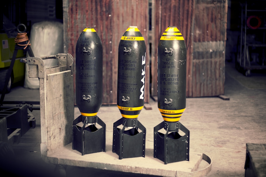 All Replica bombs are build from light weight composite materials and aluminum. All threads are identical and interchangeable with the genuine article. Metal fins are powder coated. Composite parts are coated with gelcoat which is more durable then paint. The gel coat used is UV stabilized and can handle prolonged exposure to harsh weather and from people poking and prodding.