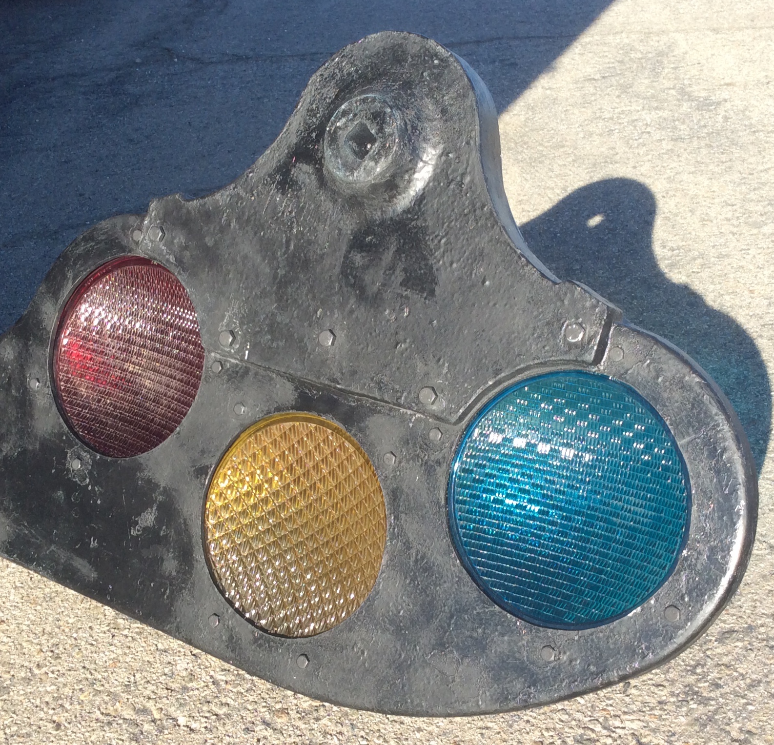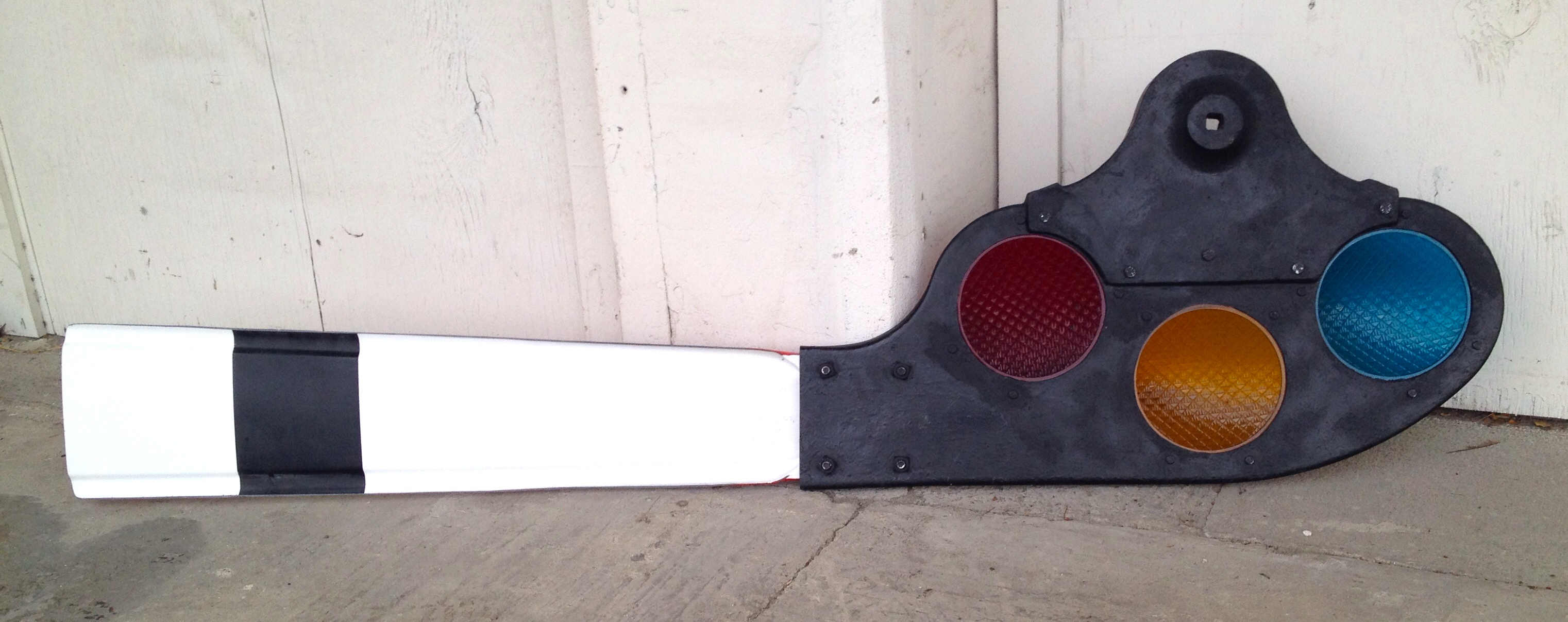 This is a full size replica semaphore. The blade, spectacle, and lens retaining rings are compatible and interchangeable with real semaphores of the same type. This semaphore is a light weight, full size replica, molded from the genuine article. You can't tell it's a replica by looking at it. All our replicas are quality manufactured to authentic specifications but lightweight and manageable for all use. Crafted from composite material including fiberglass and carbon. The gel coat used is UV stabilized and can handle prolonged exposure to harsh weather and can take abuse from people poking and prodding. Our product will not disappoint. They look so real, they fool the experts. The blade is removed for shipping.