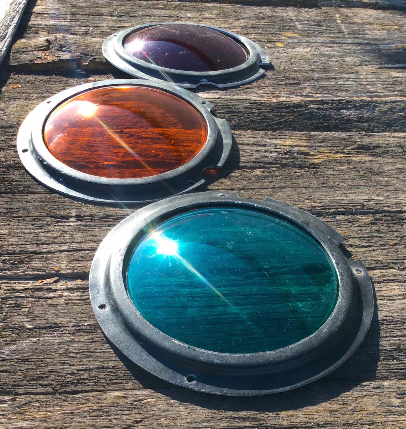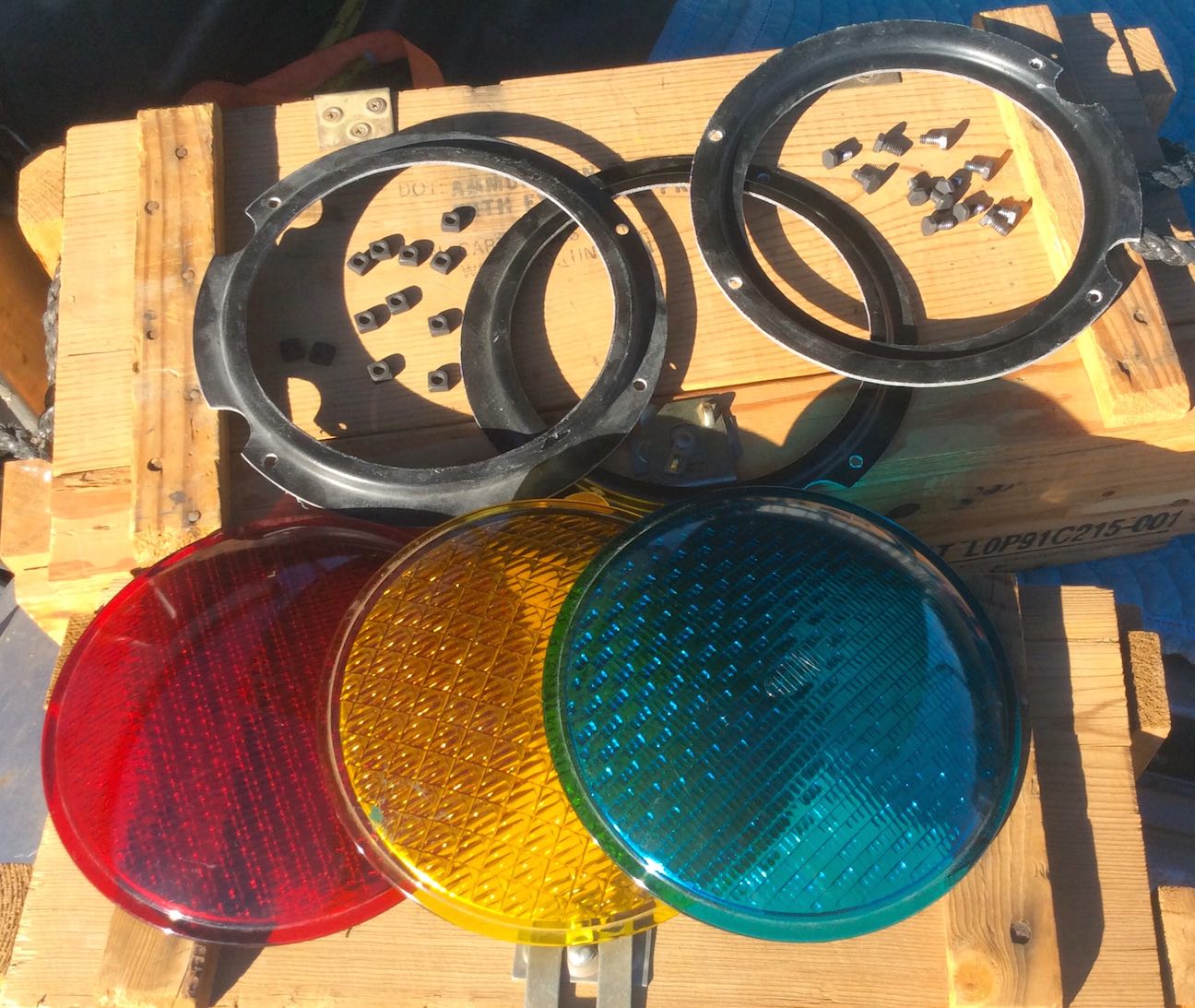 This is a set of 3 rings. There are options to buy them individually and buy the hardware. Hardware has 12 bolts and 12 square nuts. These mounting rings are fiberglass replicas. They are the correct size for 8" lenses (8 3/8" roundels) for semaphores. These rings will mount to real semaphores or on our replica semaphore.